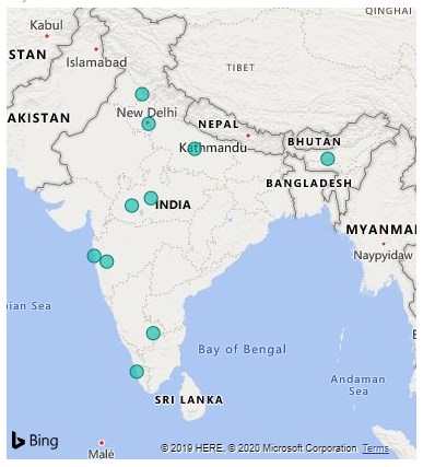 - We will see the name of cities will get populated on the Map of India. The color by which the city names are highlighted is in a default blue.