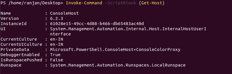 In the below example, we are putting Get-Host inside curly braces and on executing this command we are getting output as complete host details.