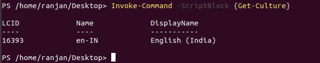 In the below example, we are putting Get-Culture inside curly braces and on executing this command we are getting the output.