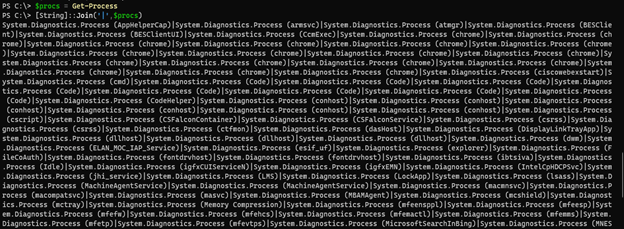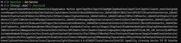 As you can see in the above example, we have Joined each services object[] by the separator ‘|’. For this example, the output might be in the proper format, but in some examples like Get-Process, when you pass the entire Object[] as the string. For example,