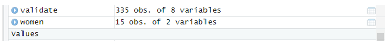 Implementation using Rstudio taken the data women.