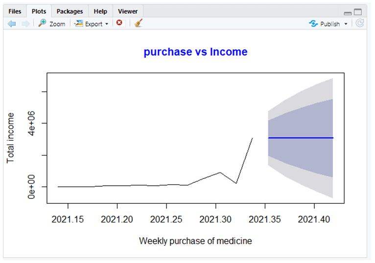 Explanation: In the above R code, we have taken historical data and created a time series for the date format and created a plot to show purchase data report for the year 2022 and the forecasting result is given as: