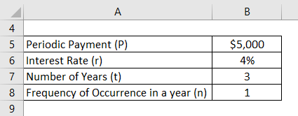 Step 2: Next, figure out the interest rate on the basis of the ongoing market rates and it will be used to discount each periodic payment to the present day. It is denoted by r.