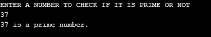 Code Explanation: In the sample output, we input two odd numbers to check whether the numbers are prime or not. We enter 71 and 37 as two numbers and then finally find out that both the numbers are prime numbers as they are divisible by only 1 and the number itself.