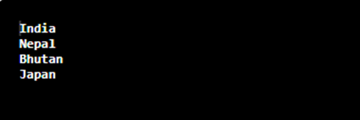 Here we will create an array of four elements and will use for loop to fetch the values from the array and print them.