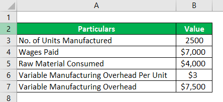| Direct Labor Cost (B) | $2500 |
