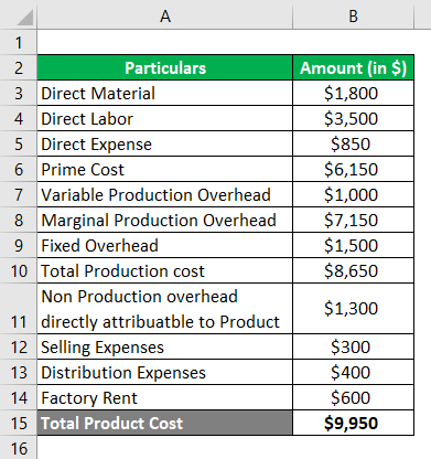 Let us understand the different aspects of Product Cost with the help of the following examples: