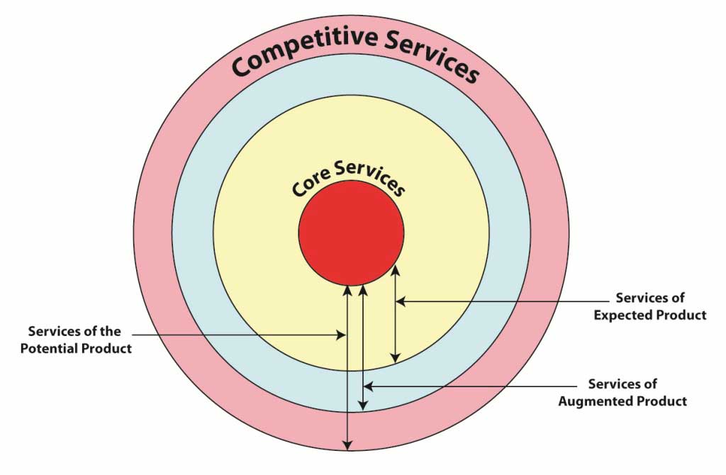 The product encompasses tangible goods, services, ideas, people, and places. All of these can be marketed on the Internet. The product development career model is explained in the given diagram below. At the center, the core and essential services exist. Outside of this, there is a competitive service provided by the manufacturer. This is equally applicable and important for services, e.g., travel services, etc.