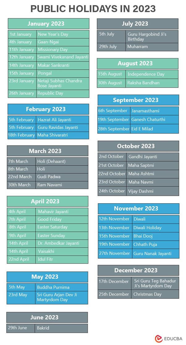 | Date and Day | Public holidays in 2023 | Holiday type |