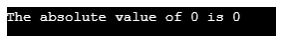 Code Explanation: Since we are passing 0, i.e., non-negative number in the user-defined function absolute_value(), the flow of execution goes to the else part since the if condition is not true, and hence we get the same number as the input.