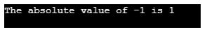 Code Explanation: Since we are passing -1, i.e., a negative number in the function abs(), we get the absolute value of the number that was given as input, i.e., 1.