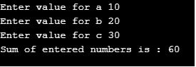 This is the basic way of calculating some numbers entered by the user. Arguments in the program are accepted through input() method which then is typecast to integer type as input() returns string type data.