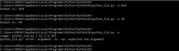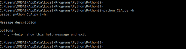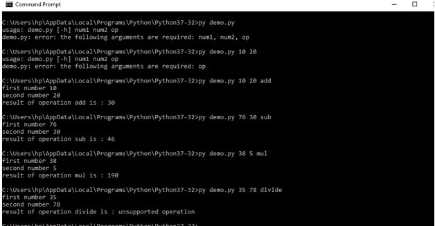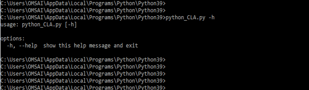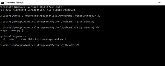 While executing the above program on command prompt, nothing happens when we don’t provide any input. But when we give optional help parameter has input we get the below output