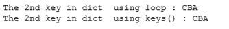 - Whereas in the second method, we have directly utilized the keys() function to print the 2nd key out of the dictionary dict.