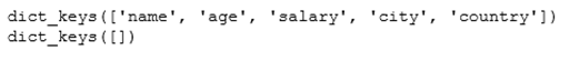 - No key is returned for an empty dictionary. The reason being it does not have any elements.