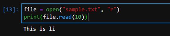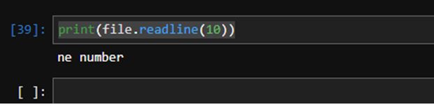 In the above example, you can see that we have specified the size into the readline method, and it will return the string upto that size, not more than that. If we have specified the size that is more than a single line of the string, still it will return only a single line irrespective of the size.