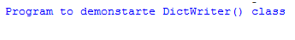 This class is also similar to the writer() function. In this class, this also specifies the keys of the dictionary through “fieldnames” as these keys are optional in the above DictReader, but keys are must be specified to avoid ambiguity when writing the data to the CSV file.