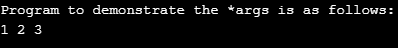 This program utilizes *args to break the list “a” into three elements. We should also note that the above program works only when the number of parameters of a function is the same as the number of elements in the given iterable variable (here, it is list “a”).