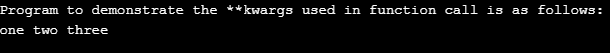print("Program to demonstrate the **kwargs used in function call is as follows:")