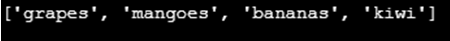 List = ["grapes" , "mangoes" , "bananas" ,"kiwi"]
