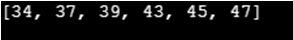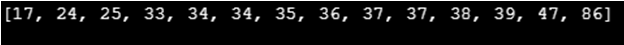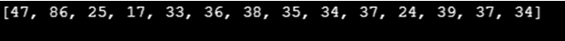 lst = [34 , 37 , 39 , 24 , 37, 34, 35, 38 , 36 , 33 , 17 , 25, 86 , 47]