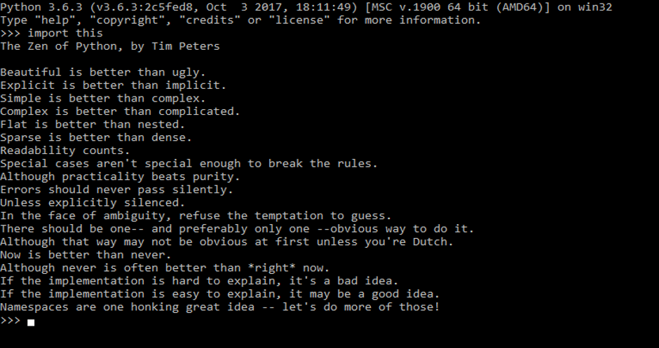 Try typing “implicit this” on Python IDE; you’ll find a poem highlighting the philosophies of Python: