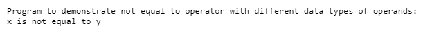 print("Program to demonstrate not equal to (is not) operator is as follows:")