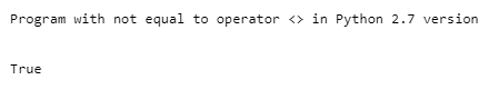 print("Program with not equal to operator <> in Python 2.7 version")
