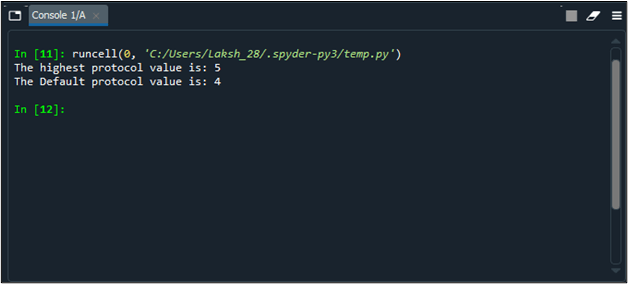 The output for this code is as shown below, which gives you the protocol values for HIGHEST and DEFAULT protocol, respectively.