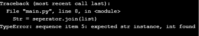 - Type Error: Join() function supports only string values in the iterable objects. If the iterable object contains any non-string value, then the join() function will raise a Type Exception.