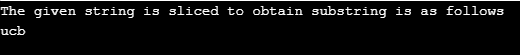 print("The given string is sliced to obtain substring is as follows")