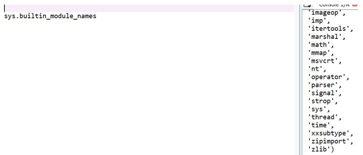 This helps you understand which are the built-in modules available in Python. One need not download these modules, and hence can be used directly environment after importing.