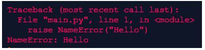 raise NameError('Hello')