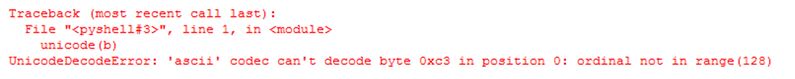 In the above program, we can see we are trying to print the Unicode characters by encoding first; then, we are trying to convert the encoded string into Unicode characters, which means decoding back to Unicode characters as given at the start. In the above program, we get an error as UnicodeDecodeError when we run. So to avoid this error, we have to decode the Unicode character “b manually.”