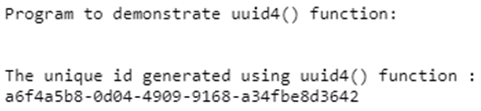 In the above program, we can see a unique id is generated using uuid4(). The uuid4() generates id using cryptographically secure random number generators hence there is less chance of collision.