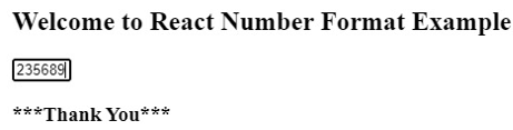 In the example below, we have used ‘react-number-format’ to import the Number format in the code. A basic example of a Number Format is displayed below.