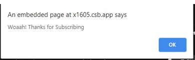 alert("Woaah! Thanks for Subscribing");