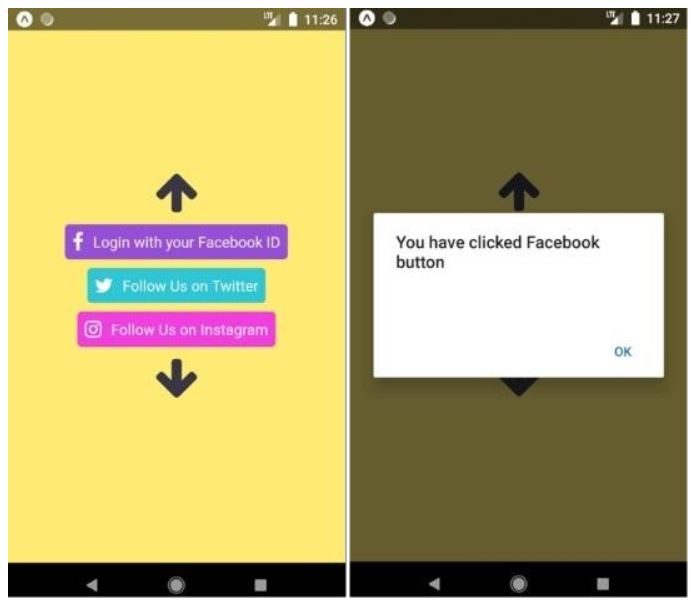 <Icon.Button name="instagram" backgroundColor="#f23de0" size={21} onPress={()=>{Alert.alert("You have clicked Instagram button")}}>