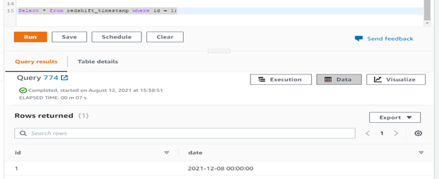 Insert into redshift_timestamp values (1, '12-08-2021');