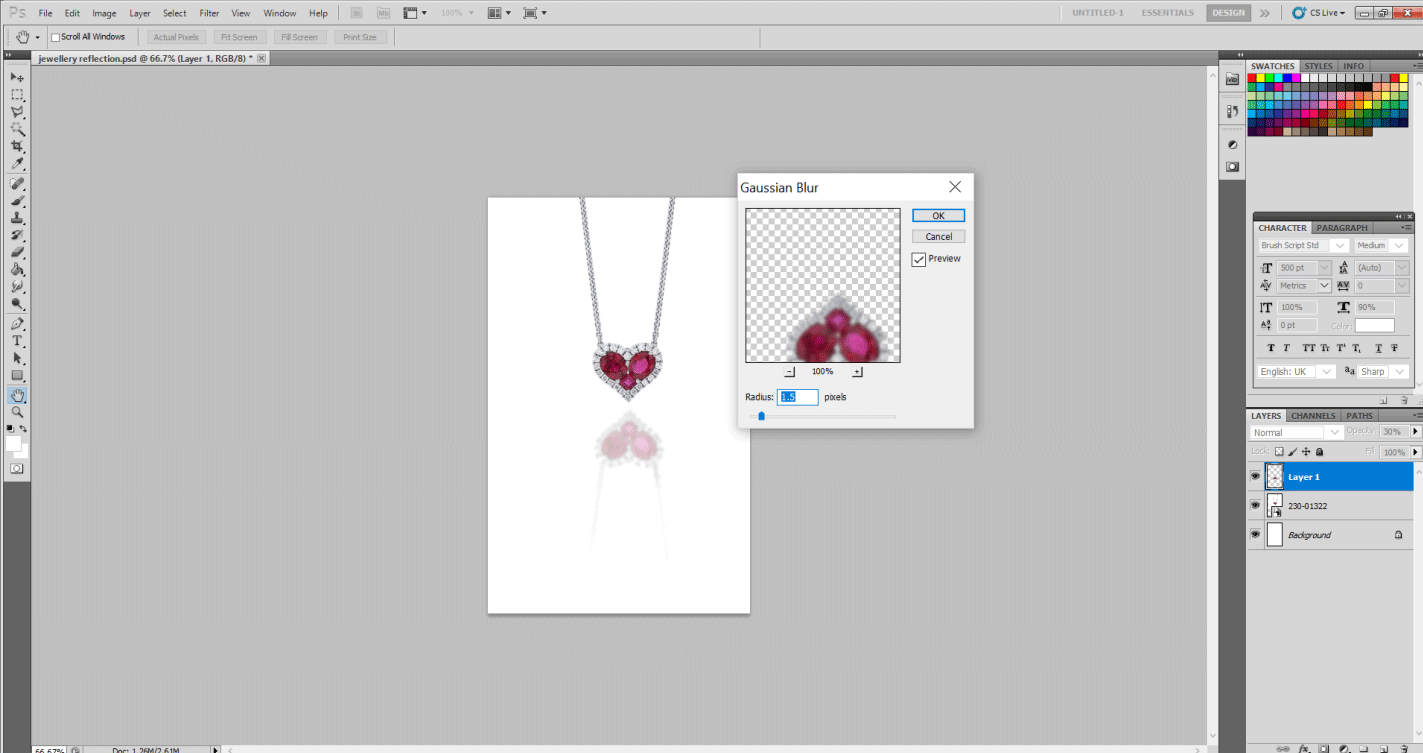 Step 7: You can even use this effect. Go to Filter>Blur, then Gaussian Blur. Set the radius to 1.5. Now your reflection looks natural.