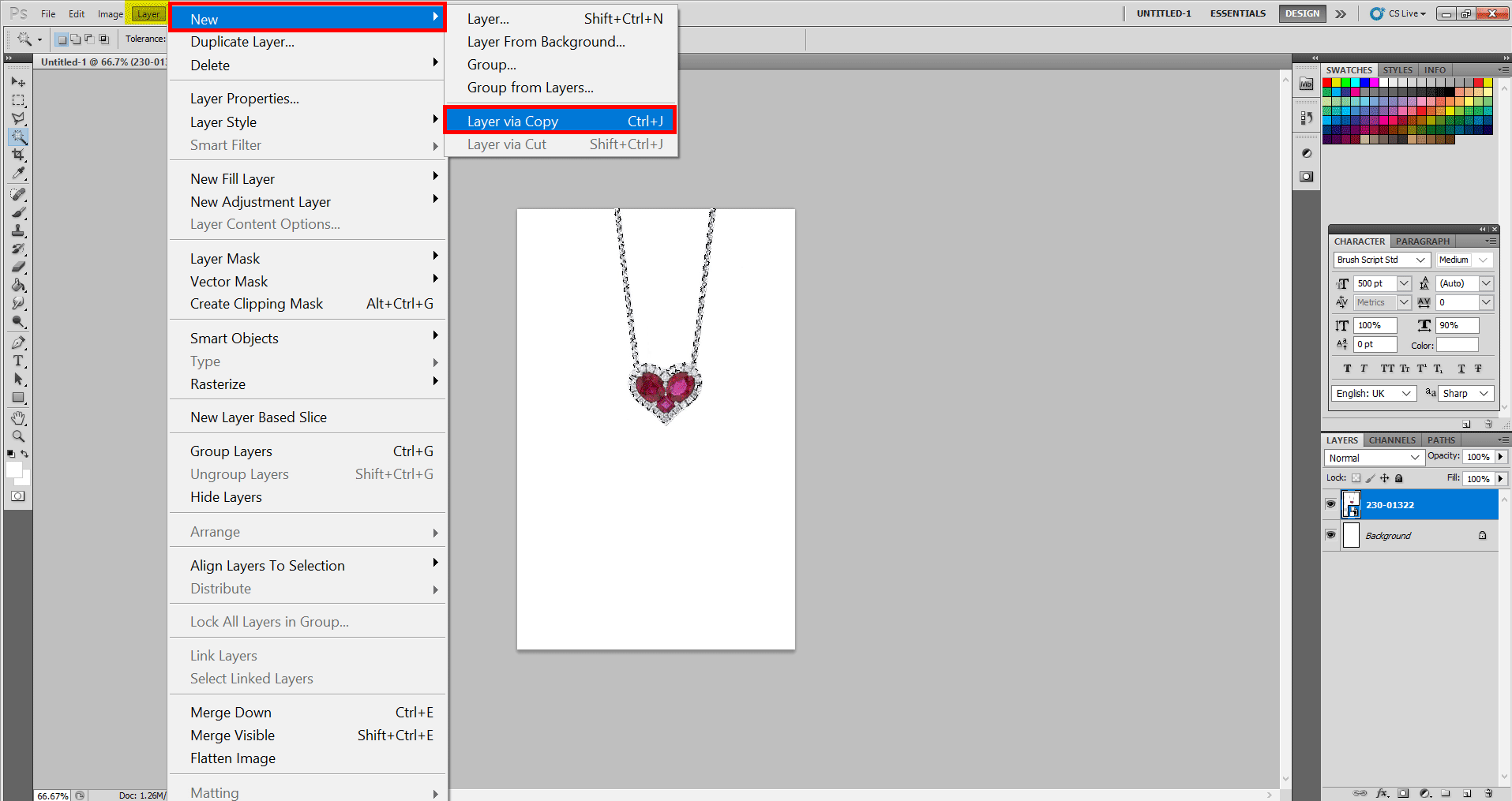 Step 4: Now go to Select>Inverse, and you will find that My piece of jewellery is selected instead. Now Go to Layer, click on New and then select Layer Via Copy. This will make a copy of the Jewelry.