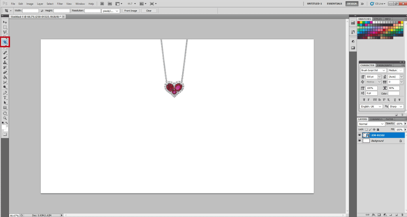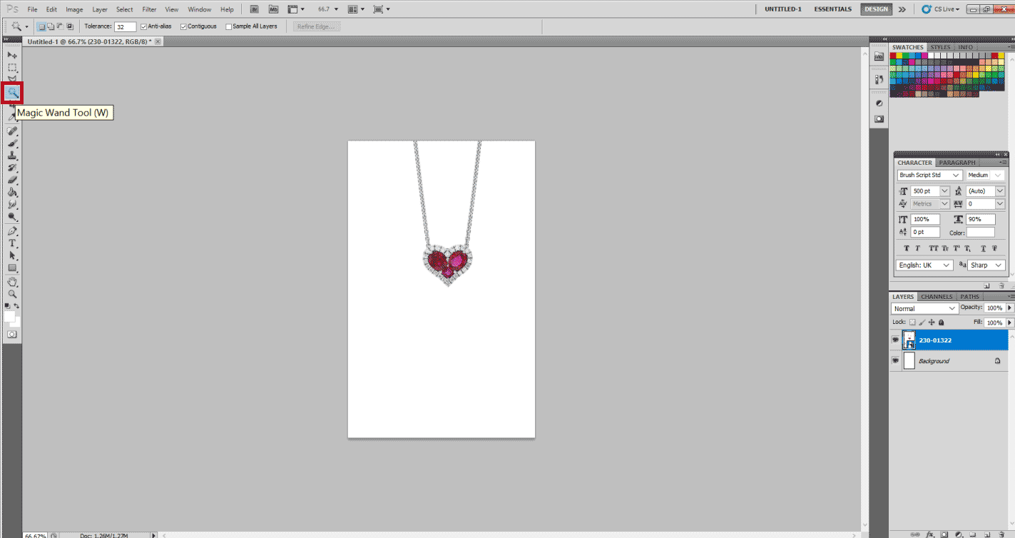 Step 3: Now, let’s make a copy of our jewellery piece. Select the Magic Wand Tool from the left. Now, with the Shift key’s help on the keyboard, please select the entire area except the jewellery, as shown below.