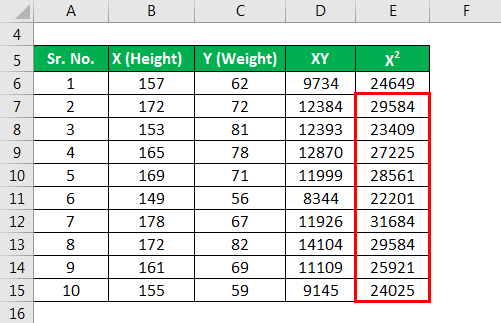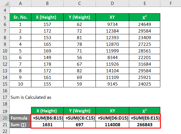 Let us take the example of a class with 10 students where their heights and weights were measured to check if their weight had any liner relationship with their height. The following information is available.