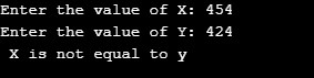 cout << " X is not equal to y";