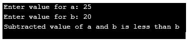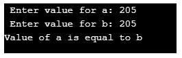 The program compares if the value of ‘a’ is greater or if the value of ‘b’ is greater and executes if the condition to give us the output.