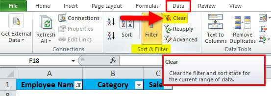 Step 5: Clear the applied Filter by following the below-mentioned steps: