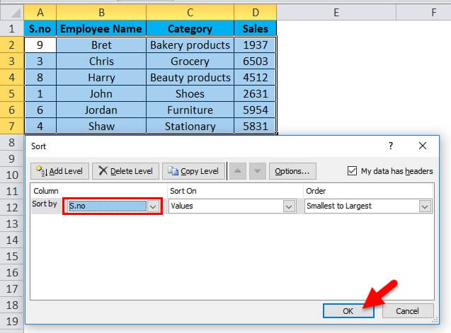 Step 4: Repeat Steps 1 & 2, but this time select the option for S.No in the Sort By option and click OK.