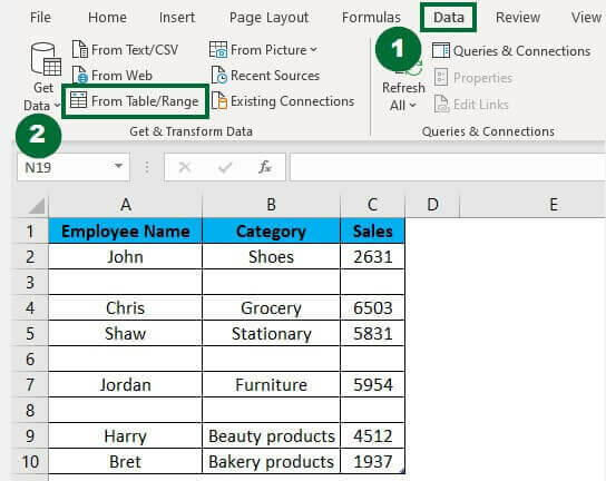 Step 1: Go to Data Tab and click From Table/Range option from the Get and Transform Data section.