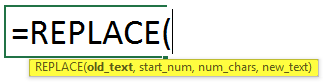 Before seeing a few examples of REPLACE function, we will first understand the 4 arguments that should be input while using the REPLACE function.