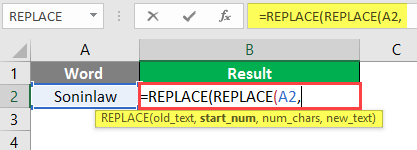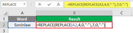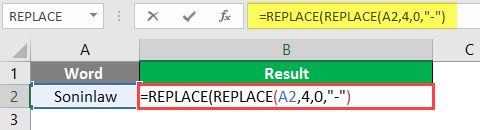 With this, we can input the first hyphen symbol between “son” and “in”, and the result of this replace function will be input for the outer replace function.